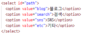 selected : 드롭다운 메뉴를 삽입할 때 기본적으로 선택해서 보여줄 항목을 지정한다.
