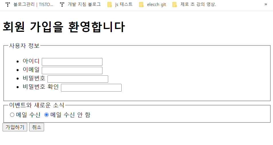 <input type="radio" name="email" value="no"><label>메일 수신 안 함</label>