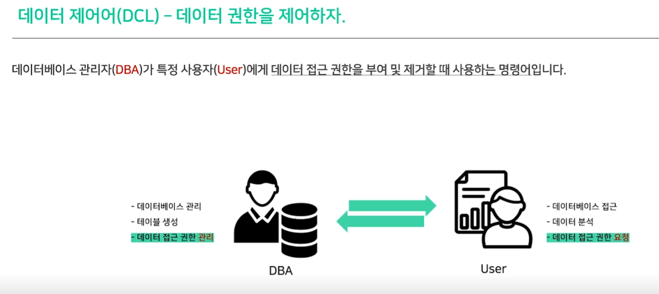 └ 데이터의 사용 권한을 관리하는 데 사용하며 GRANT, REVOKE 문 등이 있다.