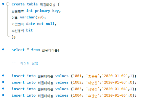 -회원 테이블 생성 후, 값들을 넣어줌. 몇가지 오류 발생으로 알게된 것-
