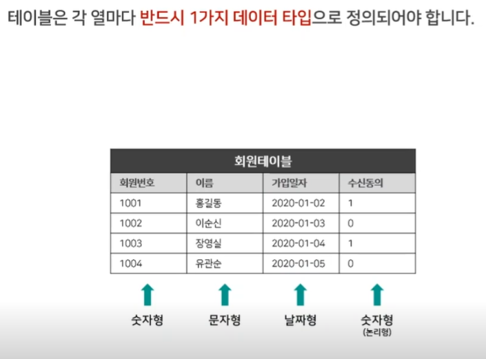 테이블 정의 규칙