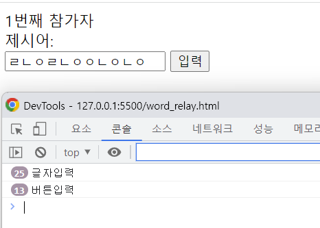 console.log('글자입력')