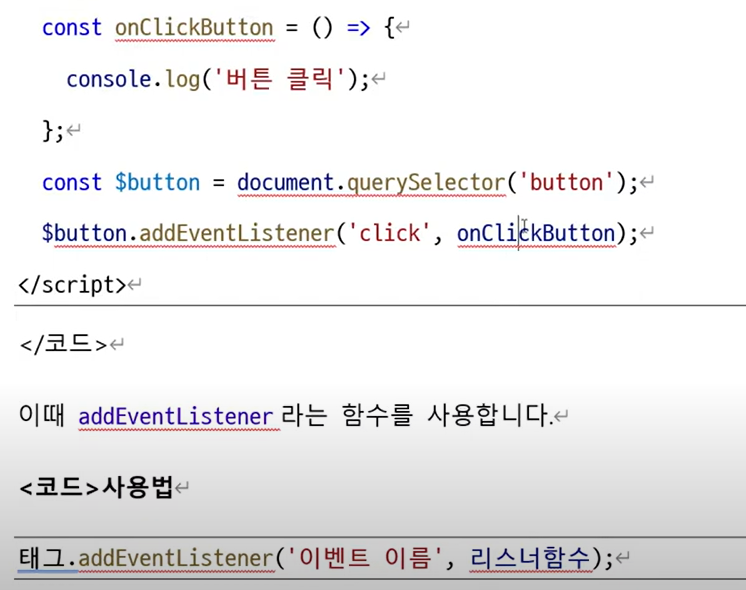 태그.addEventLister(문자열, 함수자리)