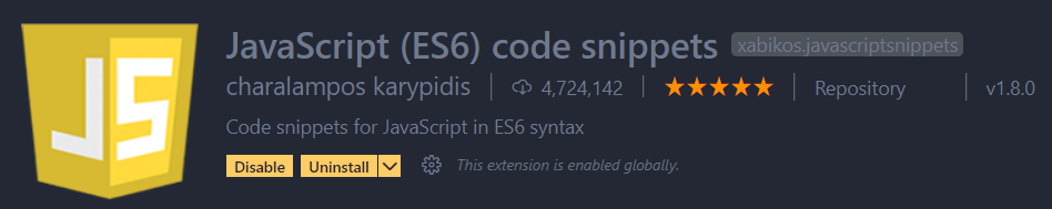 자바스크립트 코드에 대한 스니펫을 지원합니다. 스니펫이란 console.log()와 같은 명령어를 clg만 쳐도 해당하는 명령어가 나올 수 있게 작성을 도와주는 기능입니다.