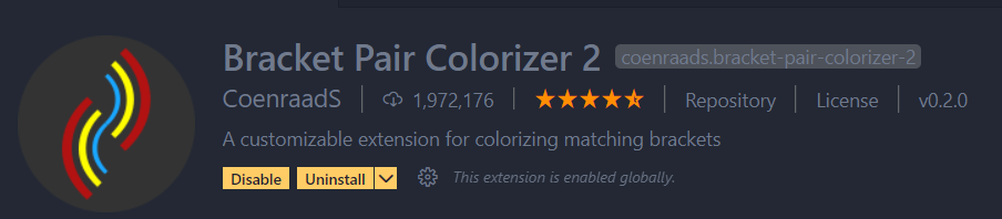 한쌍을 이루는 괄호들을 다른 색상으로 색칠 해 주는 확장입니다. 코드가 너무 알록달록하면 오히려 눈아프고 가독성이 떨어져서 좋아하지 않는 분도 계시지만 저는 개인적으로 선호합니다. 또 자바스크립트는 괄호가 좀 복잡하게 나오는 경우가 많아서 개인적으로 추천드립니다.