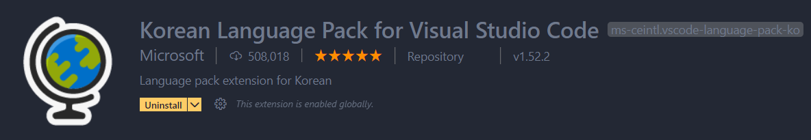 이 확장을 추가로 설치하셔서 한국어 환경을 이용하시면 됩니다.