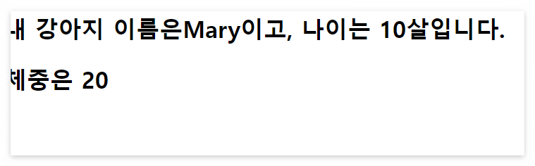 "내 강아지 이름은" + myDog.name + "이고, 나이는 " + myDog.age() + "살입니다.";