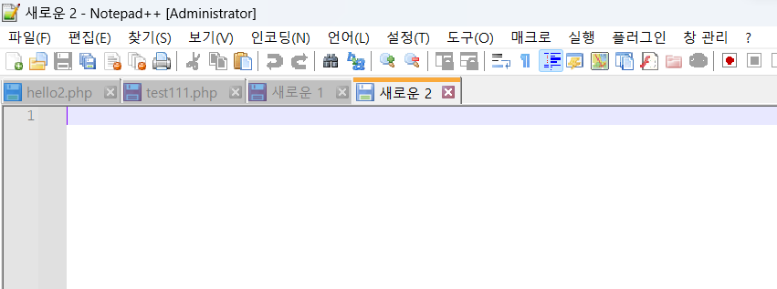 2. php 띄우기 (Notepad++을 사용. 관리자 권한으로 띄워저야 저장이 원할해진다.)